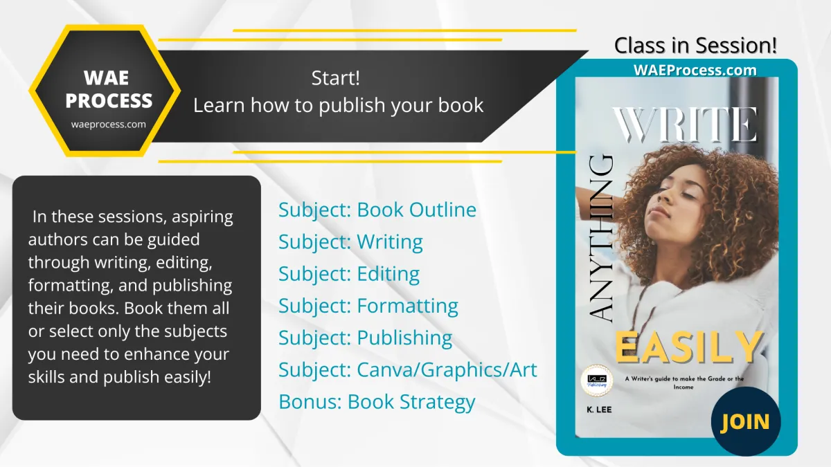 WAE Process: We make writing and publishing easy. Need help? Call KLE Publishing department